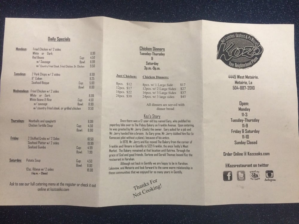 Welcome to Koz's, a culinary gem nestled at 6215 Wilson St in Harahan, LA. This comfort food haven is celebrated for its mouthwatering sandwiches and seafood specialties. The warm, casual atmosphere makes it a perfect spot for group gatherings or family outings, complete with outdoor seating and a kid-friendly vibe.